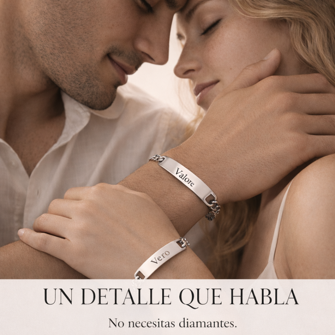 No necesitas diamantes para demostrar lo que sientes. Un nombre grabado, un recuerdo compartido y un vínculo que se lleva cada día. Personaliza la pulsera y convierte un regalo en algo eterno. ✨